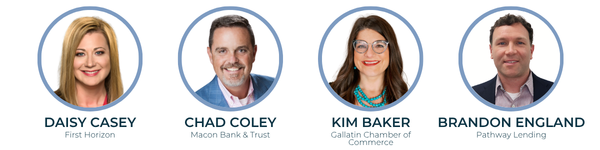 We’re also proud to feature a distinguished panel of guest speakers: Chad Coley (Macon Bank & Trust), Daisy Casey (First Horizon), Kim Baker (Gallatin Chamber of Commerce), and Brandon England (Pathway Lending).